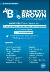 Ya son más de 60 los comercios adheridos y desde la Comuna indicaron que ante cualquier consulta o para recibir mayor información de esta iniciativa, que es totalmente gratuita y pensada para potenciar el consumo local, se puede enviar un mail a beneficios@brown.gob.ar.