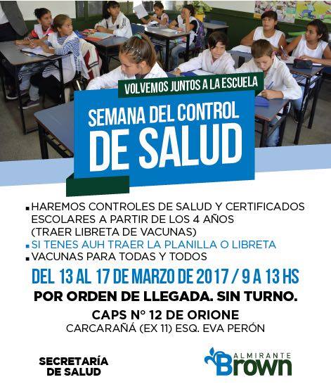 Por otro lado, del lunes 13 al viernes 17 de marzo -de 9 a 13 horas- el Municipio efectuará también en dicho CAPS, sin turnos previos, controles de salud y certificados médicos a niños en edad escolar a partir de los 4 años. También se realizará la vacunación de los chicos.