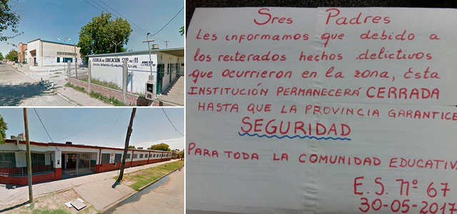 Los maestros explicaron que «los hechos son cada vez más frecuentes y se hace difícil llegar o salir del colegio tanto para los maestros como para los alumnos. Después de las cinco de la tarde la inseguridad se hace más presente en la zona, y es complicado para aquellos que tienen que esperar el colectivo en un parada o se van caminando».