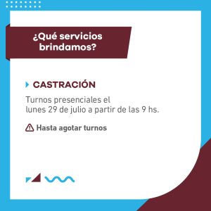 Las personas que necesiten sacar turno con un veterinario para castración tendrán que acercarse el día lunes 29 a partir de las 9 horas. El equipo de trabajadores y trabajadoras municipales asignará las reservas por orden de llegada hasta agotar cupos. En tanto, las vacunas antirrábicas se aplicarán sin turno previo durante toda la semana de 9 a 12 horas.
