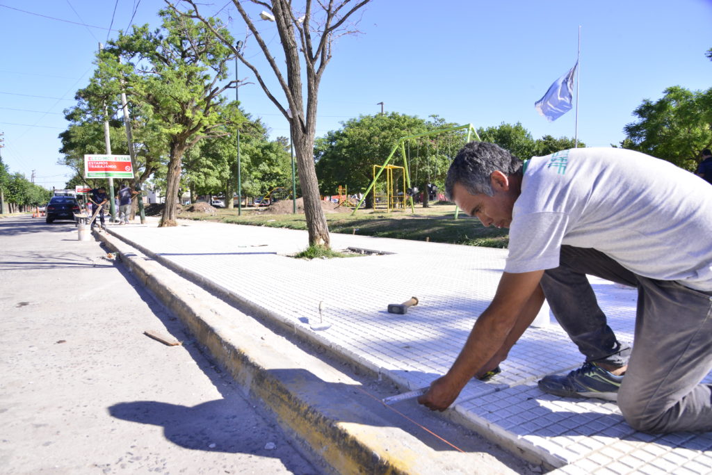 Las cuadrillas avanzan con la construcción de las veredas perimetrales para luego comenzar con las calles internas que unirán los distintos espacios de recreación. Además, se realiza la pintura de los juegos infantiles y se instalaron juegos para la salud.