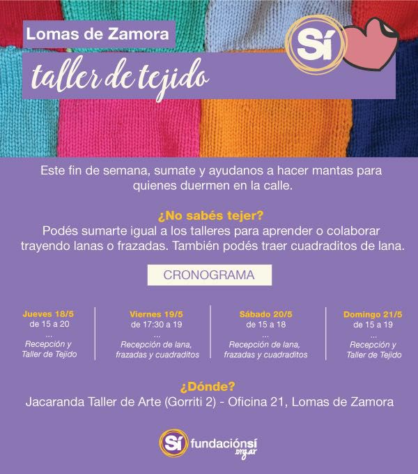 Como lo viene haciendo desde hace tiempo, con el único objetivo de ayudar a quienes más lo necesitan y están en situación de calle, la Fundación Sí de Lomas de Zamora hace una llamado para sumar manos y tejer y tejer para abrigar en las noches frias.