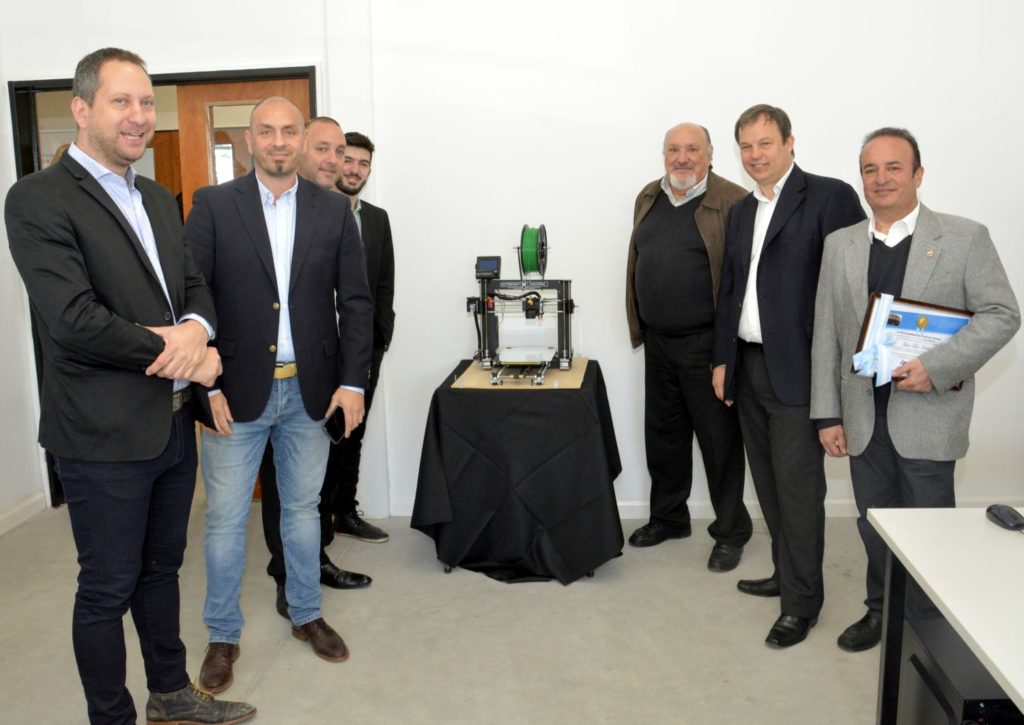 Durante el evento se impuso el nombre de tres reconocidos emprendedores y pioneros del crecimiento del Parque Industrial a tres aulas del nuevo centro: Humberto D’Antonio, Juan Las Heras y Darío Barbieri, a cuyos familiares el intendente entregó recordatorios de los reconocimientos.